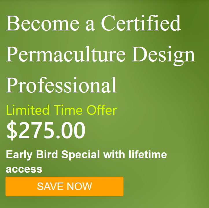 Online Pan Gaia Permaculture Design Certification (Early Bird Special)$275$275https://schema.org/InStockusdRich HaslamRich HaslamAdd to cartLifetime access to the course PLUS updatesAdd to wishlist New wishlistShareShare on XShare on Facebook Copy linkCopy product URL